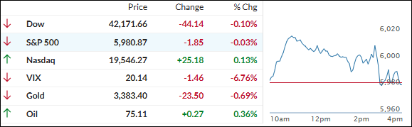 The market was split today: the Dow pushed to fresh highs, while the S&P 500 and Nasdaq slipped early on as renewed worries about pricey tech and AI plays took some air out of yesterday’s Fed-fueled optimism.