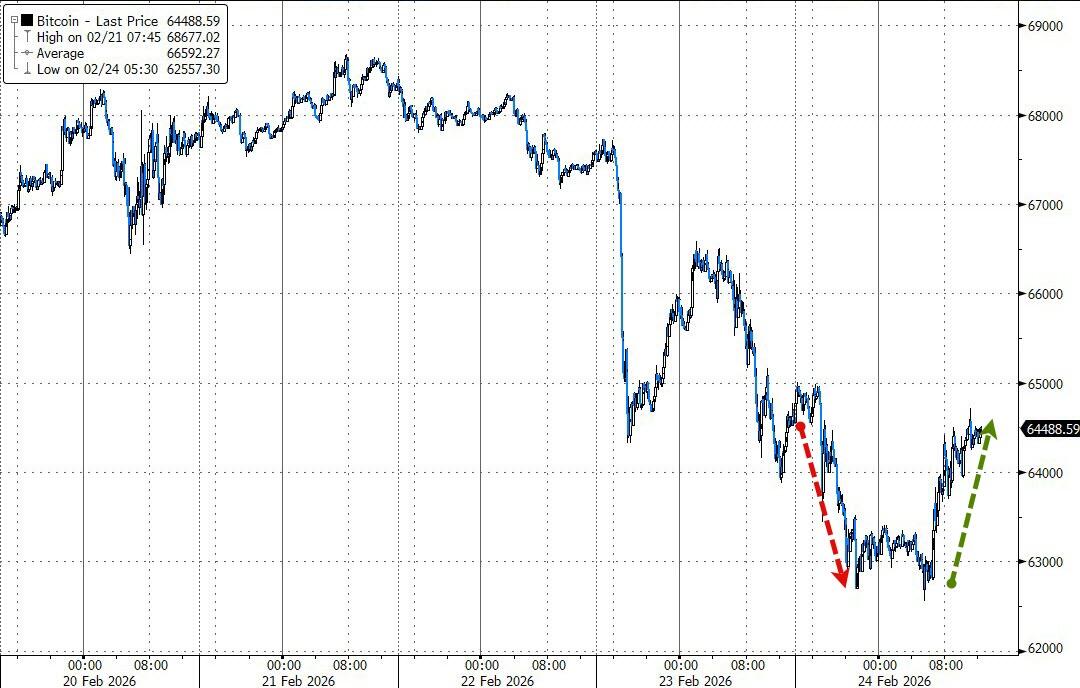Bitcoin dumped overnight but found support at $63K and recovered some ground.