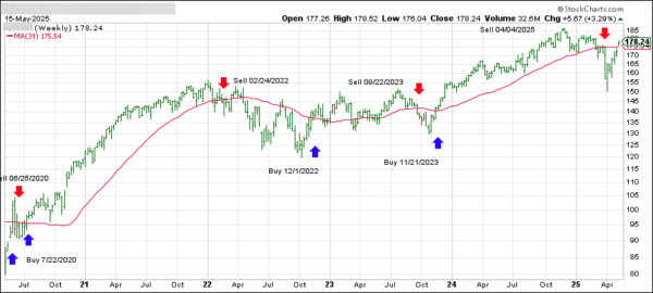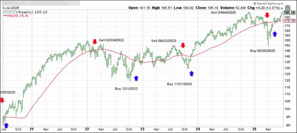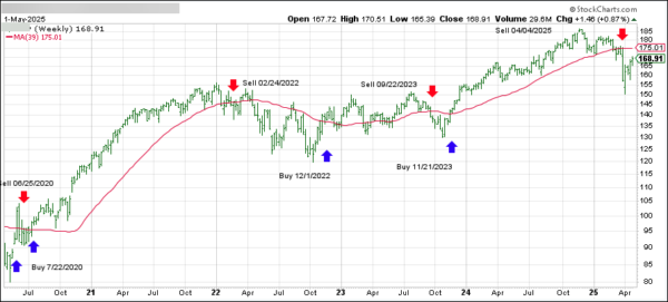 Do you want to know which ETFs are hot and which ones are not? Then you need my High-Volume ETF Cutline report. It tells you how close or far each of the 311 ETFs I follow is from its long-term trend line (39-week SMA). These are the ETFs that trade more than $5 million a day, so they are not some obscure funds that nobody cares about.