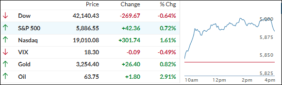 After treading water early on, the major indexes flipped into rally mode, helped along by a late-day short squeeze that lifted nearly every sector into the green.