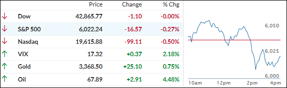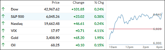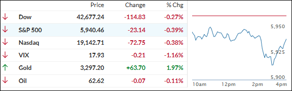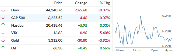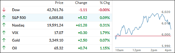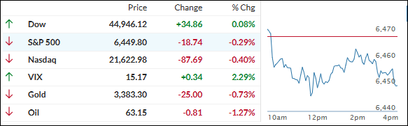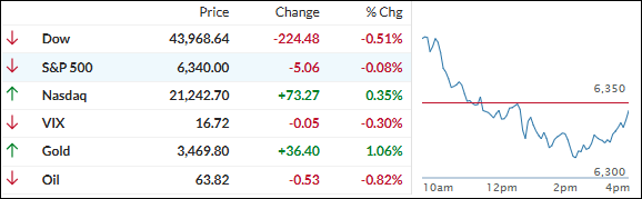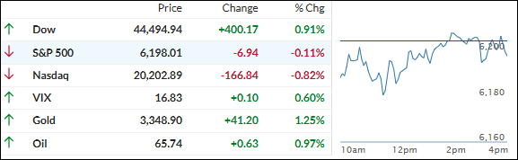 The market was split today: the Dow pushed to fresh highs, while the S&P 500 and Nasdaq slipped early on as renewed worries about pricey tech and AI plays took some air out of yesterday’s Fed-fueled optimism.
