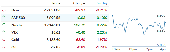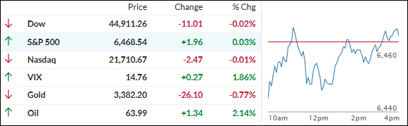 By the close, the major indexes mostly churned sideways, with only the Nasdaq managing a small gain. Economic reports were a mixed bag, even as the Citi Economic Surprise Index ticked higher, hinting that data has lately been coming in a bit better than forecasts.