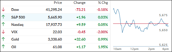 The major indexes ended the day with only minor changes. Rate-cut expectations tumbled, and bond yields rose over the week. The dollar gained modestly but remained within its recent trading range.