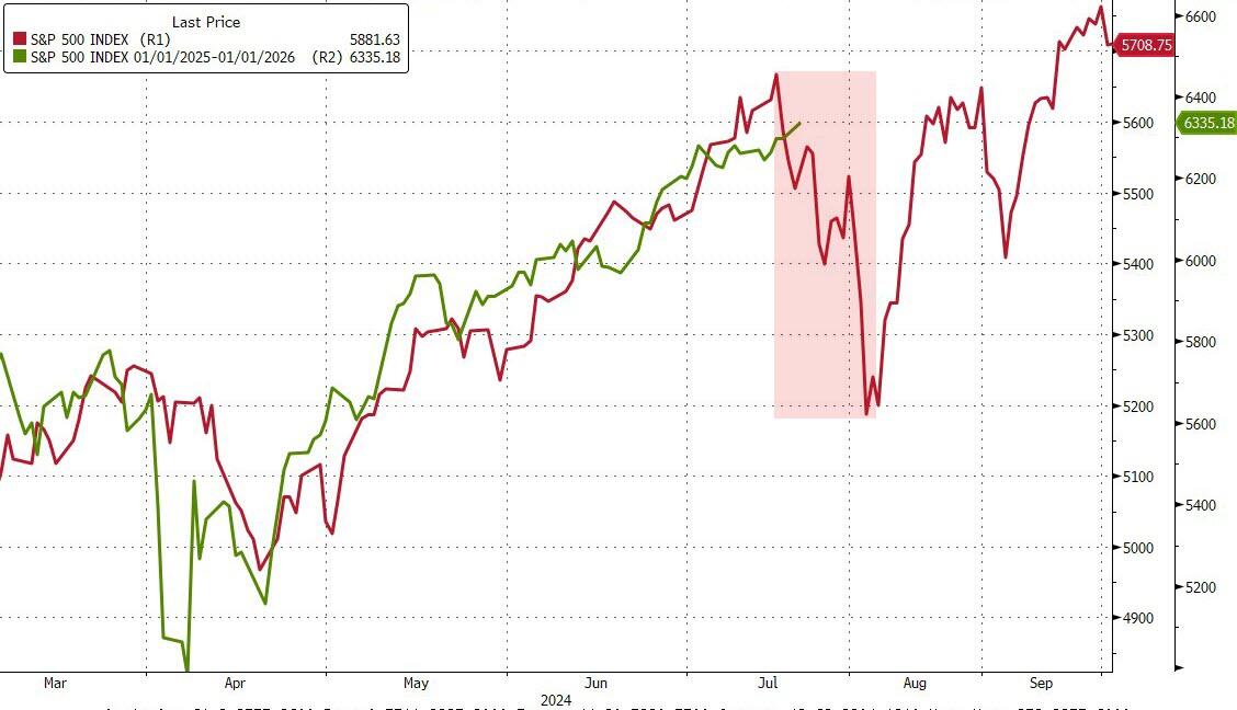 ZeroHedge pointed out an interesting parallel between this year’s S&P 500 and last year’s chart action. With seasonal trends lining up, is the market about to repeat history—or are we in for some surprises as summer heats up?