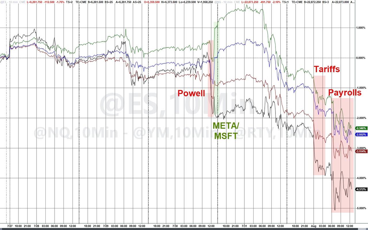 Stocks felt the heat on Friday as August trading kicked off with a double dose of bad news—a soft jobs report and President Trump’s new tariff hikes.