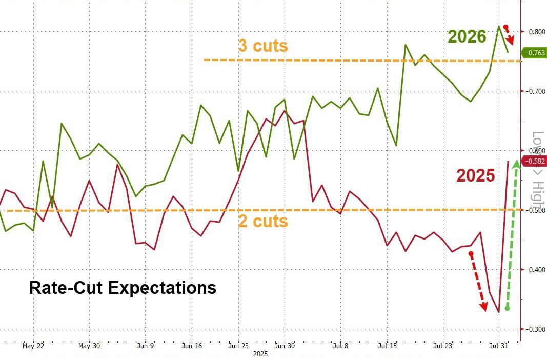 The grim data spiked odds that the Fed might cut rates sooner to give the economy a boost, with traders now pricing in a 66% chance of a rate cut by September.