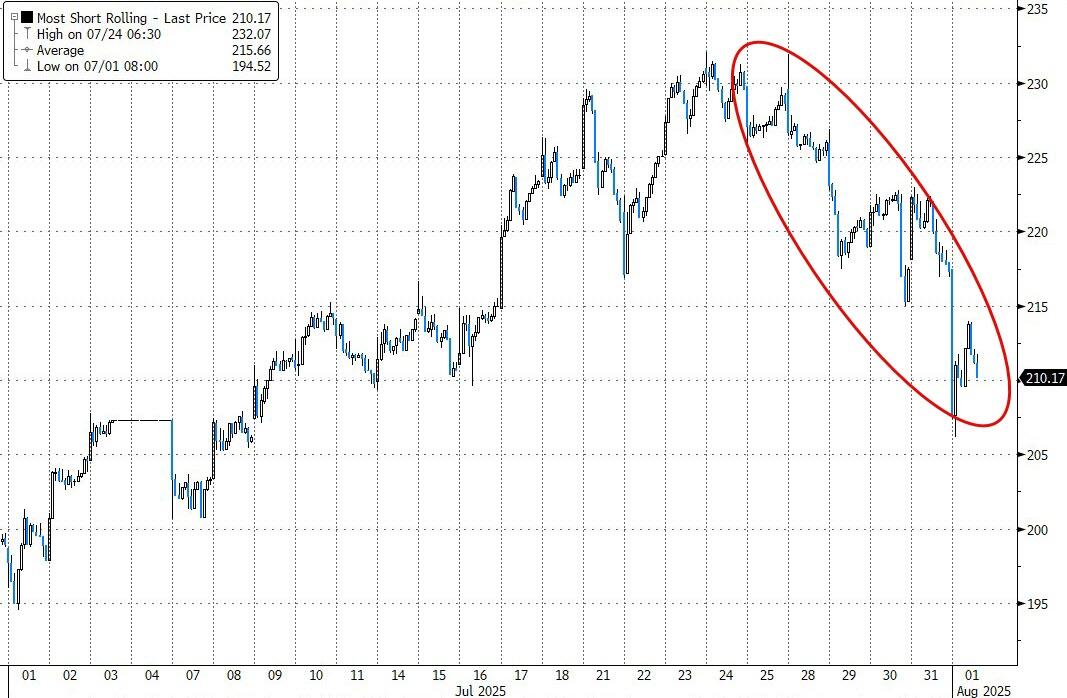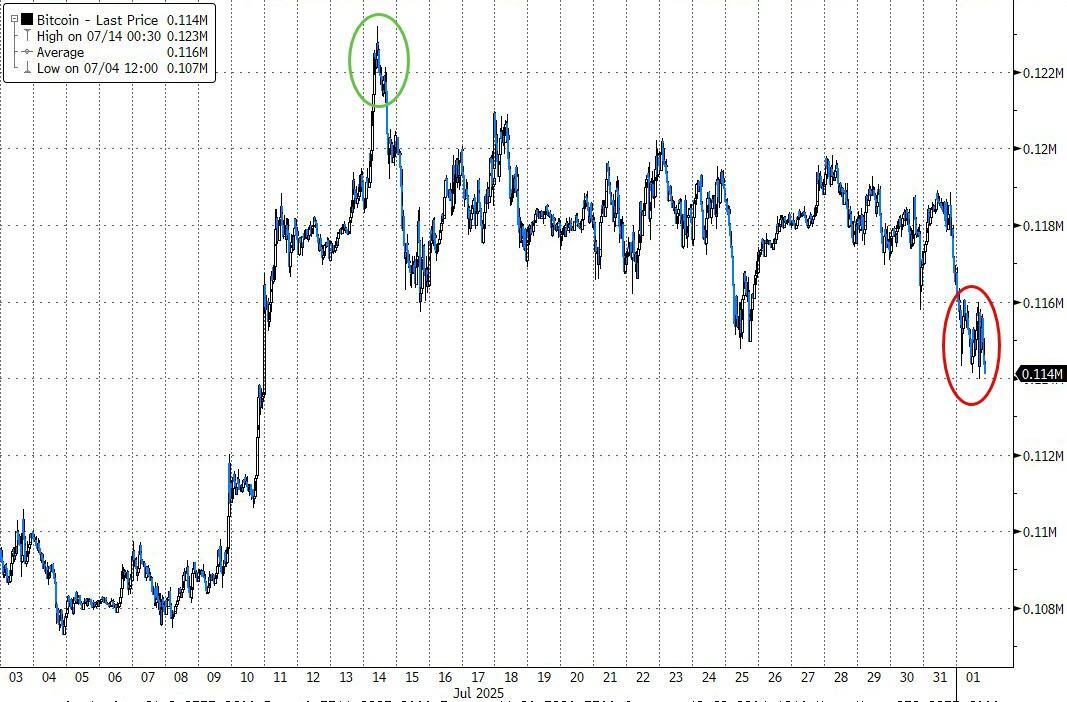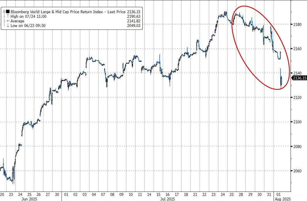 Meanwhile, Trump’s updated tariffs—ranging anywhere from 10% to 41% on dozens of trading partners—hit overnight, stoking new trade war worries and adding to market jitters.