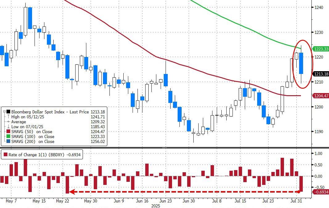 Trend-wise, the most shorted stocks have been down for seven straight days, global stock markets posted a sixth day of losses, bond yields collapsed, and the dollar broke its six-day winning streak with its worst session in two months.