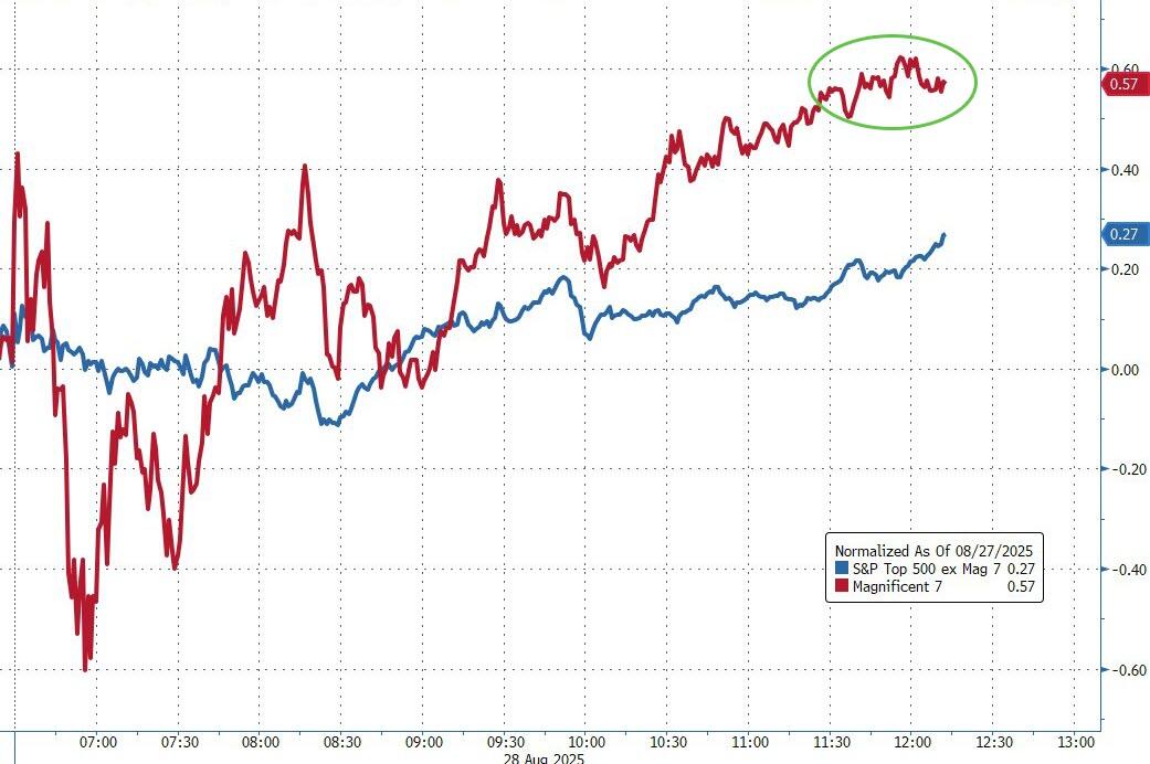 Mag 7 stocks were mixed: Nvidia slid just a bit after earnings, while Broadcom popped over 1% and others like Microsoft, Apple, Alphabet, Amazon, and Tesla showed slight increases, with Meta bucking the trend and dropping. I think this split shows traders are still sorting winners and losers in the AI and tech trade—no clear leadership, but plenty of action.