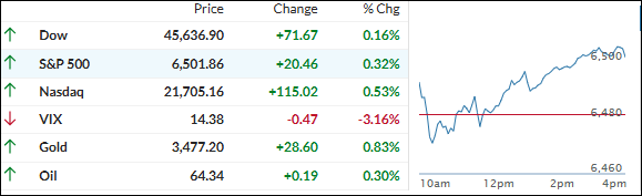 Momentum picked up as the session wore on, leaving the S&P 500 at another record high and both the Dow and Nasdaq in the green.