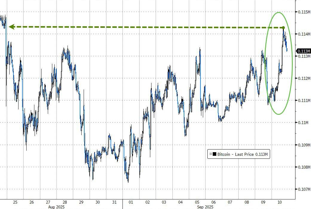 Bond yields and the dollar both dipped, gold closed at a fresh high (even if it couldn’t hold its best levels), and bitcoin pushed above $114k for the first time in weeks.