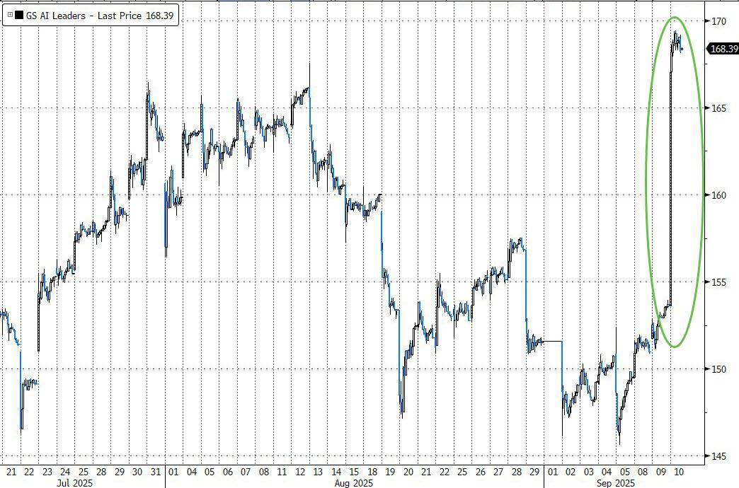The Mag 7 group lagged, but Goldman’s AI Leaders basket surged as investors piled into the hottest tech names.