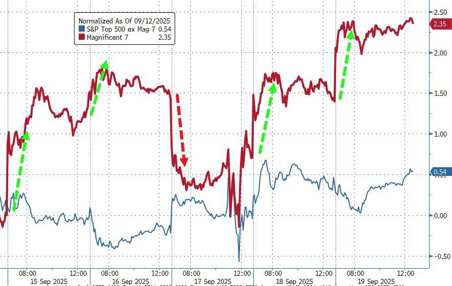 Stubborn inflation and a solid but slightly slowing labor market helped push the Fed to act, but bond yields actually rose for the week—supporting a relentless rally in the most shorted stocks and the Mag 7 basket.