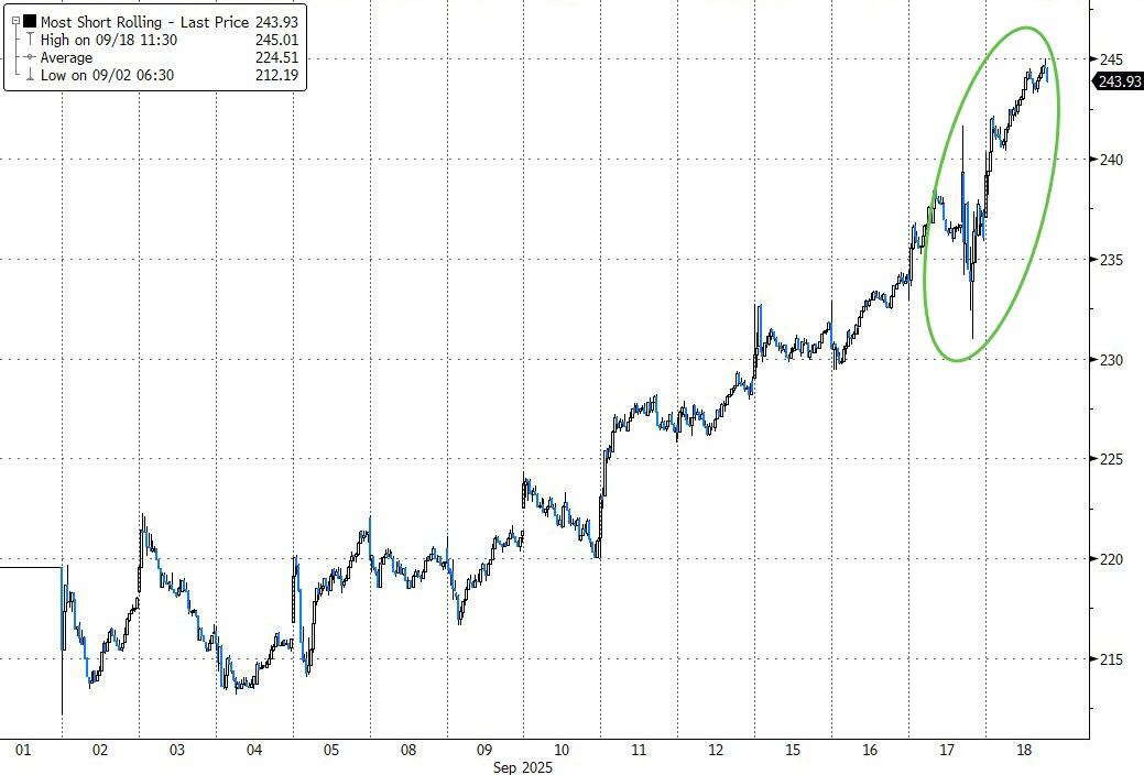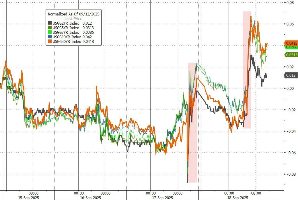 Yesterday’s volatility after the Fed’s move settled down, even if Fed Chair Powell was quick to tamp down hopes for an aggressive rate-cutting spree. While policymakers expect two more cuts this year and just one for 2026, traders had hoped for a little more action next year.
