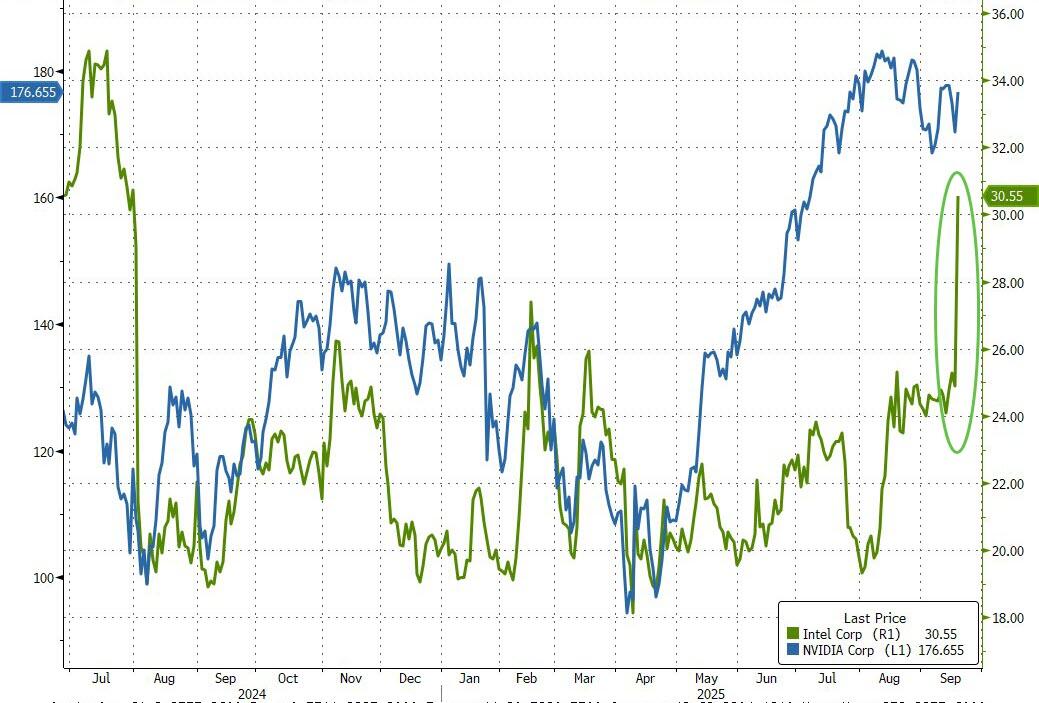 Intel stole the spotlight, popping 26% after Nvidia announced a $5 billion investment and a new partnership on data center and PC products—Nvidia shares jumped over 3% on the news.
