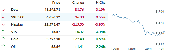 Mega-cap tech suffered its worst drop since early August even as bond yields slipped. The dollar flattened out, gold set another overnight high, and bitcoin kept moving around its recent lows.