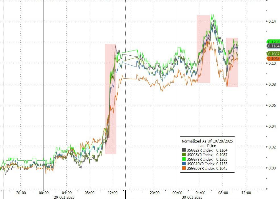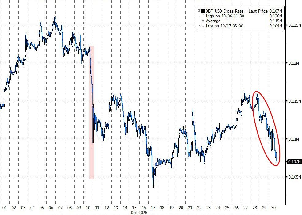 Powell made it clear that another reduction is “far from a foregone conclusion,” sending bond yields and the dollar higher, while Bitcoin and most major asset classes lost ground except for gold and silver, which managed to notch solid gains of 1.96% and 2.59% respectively.