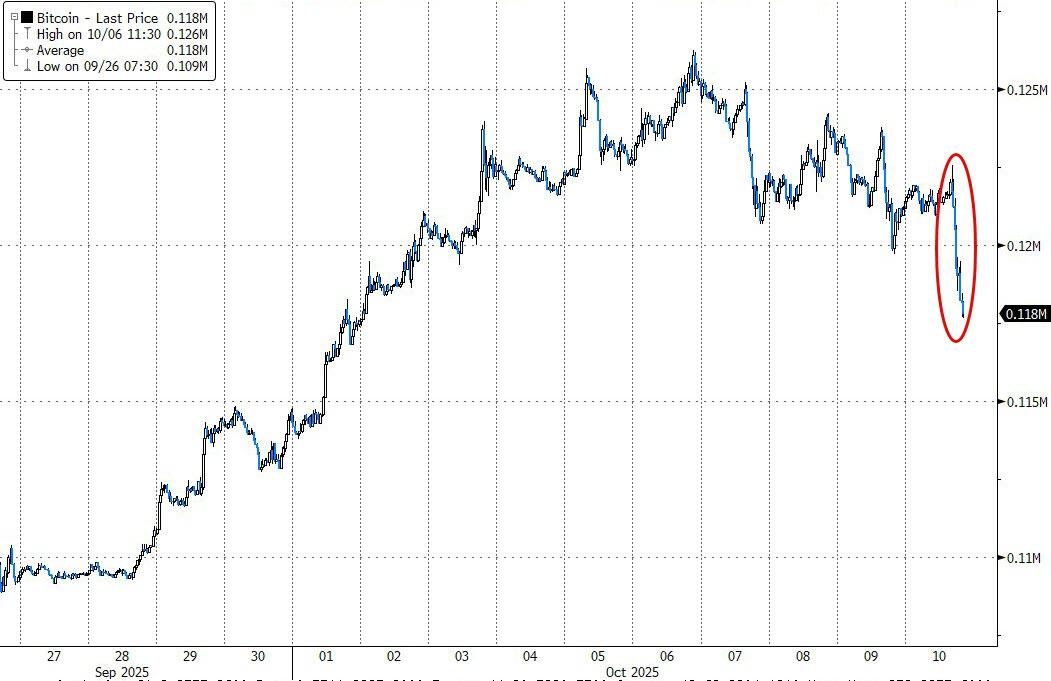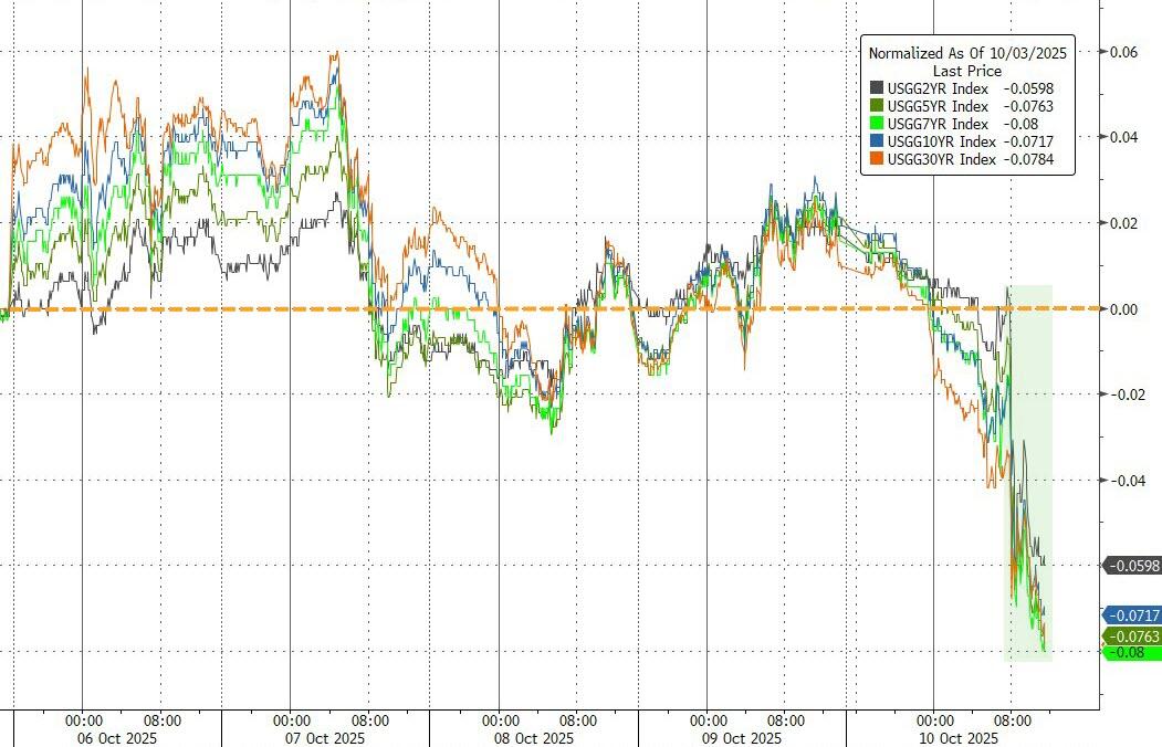 The drop picked up steam all the way into the close, especially after Trump announced he was scrapping a planned meeting with President Xi and floated a “massive” tariff bump as payback for what he described as China holding the globe “captive” with rare earth controls.