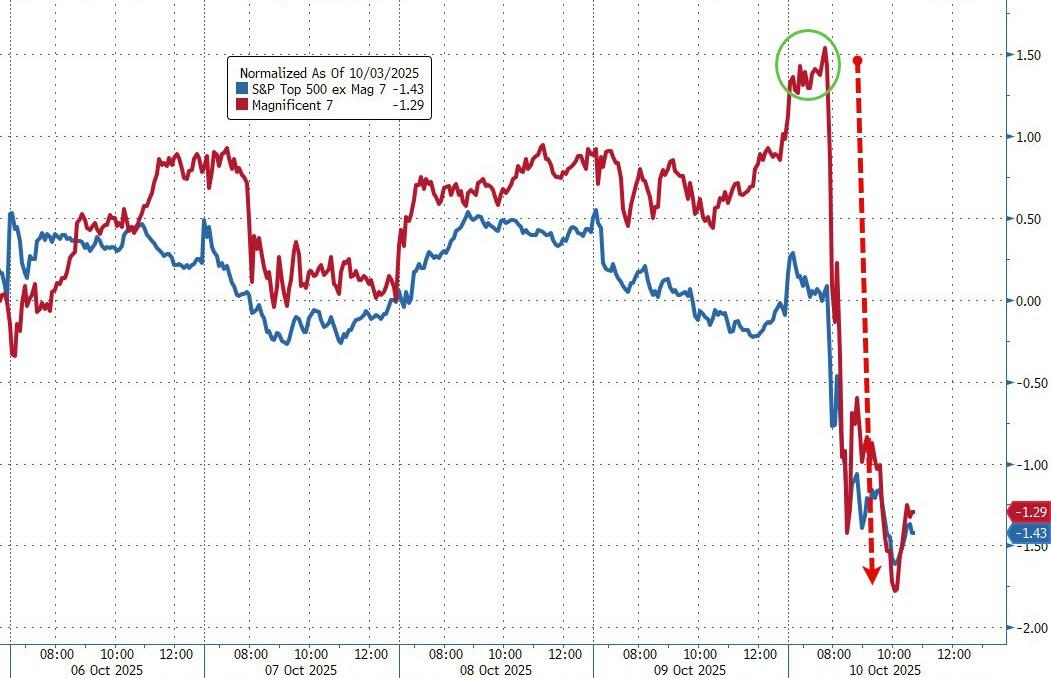 Today, the “Mag 7” and the rest of the S&P 500 dropped in sync, all ending the week with sharp losses and posting the first 1%+ drop in 48 trading days.