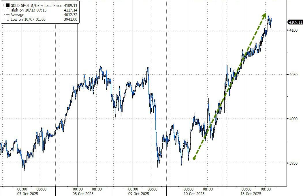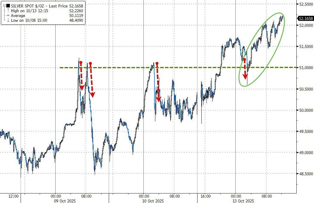 Precious metals once again stole the show—silver soared more than 4% to break $52, and gold surged past $4,100 for the first time ever.
