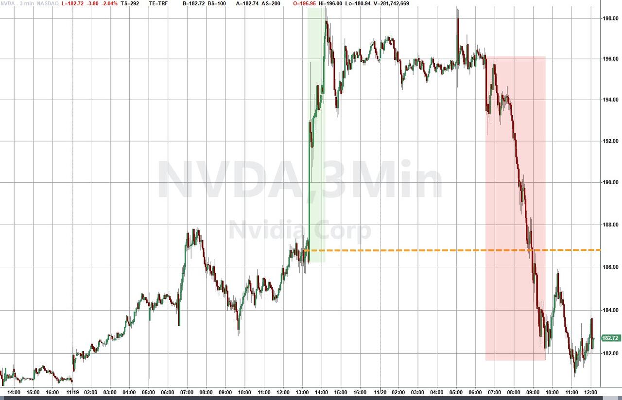 Nvidia closed down on the day—yes, you read that right—after being up double-digits intraday. Classic “pump it, dump it” move.