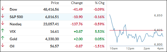 The market tried to get something going early, but the bounce fizzled and the major indexes slipped back into the red as pressure in the AI space kept weighing on sentiment.