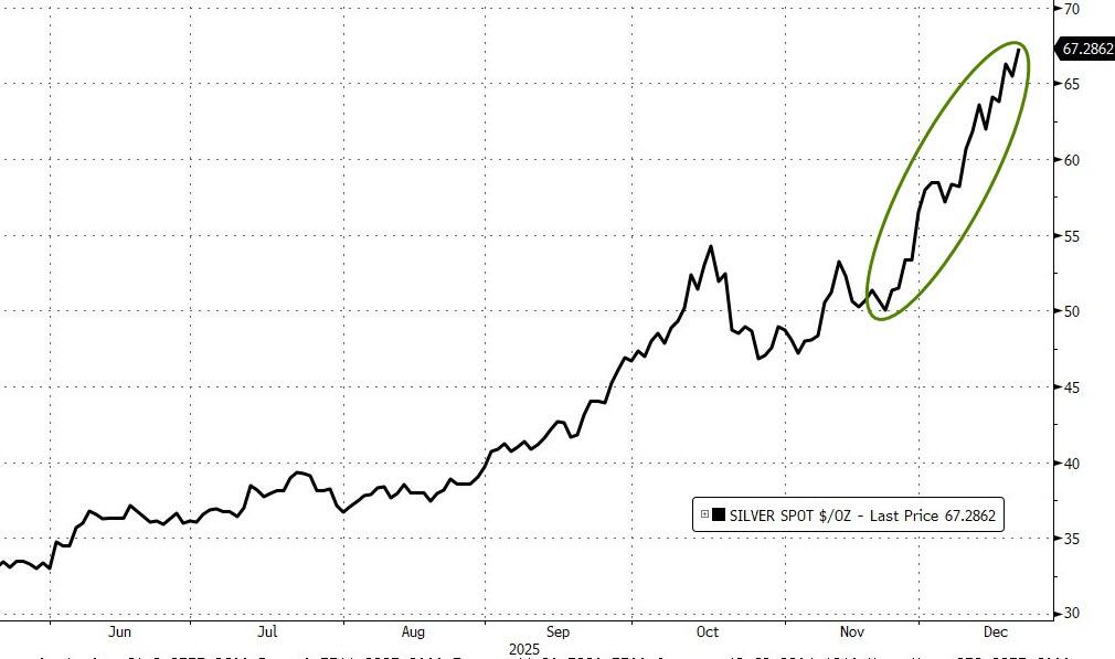 Metals stole the show: gold and silver both hit new record closes (gold over $4,350, silver topping $67), while copper flirted with old highs. Bond yields eased; Bitcoin rode its usual rollercoaster to finish slightly lower.