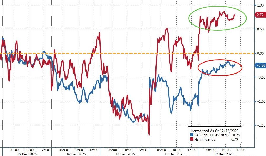 By Friday’s close, the S&P 500 clawed back to flat for the week, the Nasdaq squeezed out a modest gain, and the Mag 7 outperformed the other 493 S&P names—classic AI resurgence.