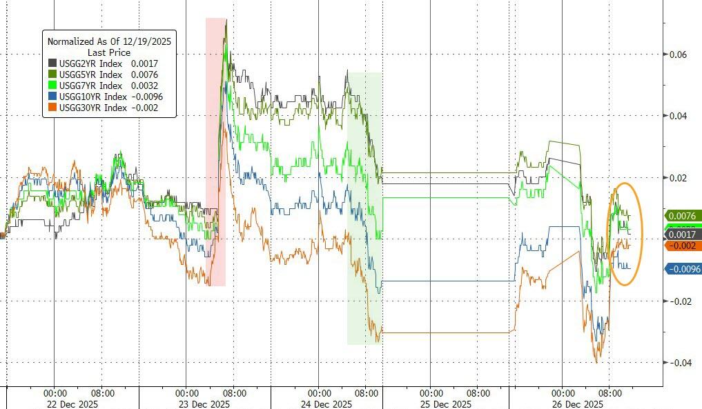 The S&P gained over 1%, the Dow and Nasdaq both up more than 1% too, putting us on track for the fourth weekly win in five. Classic post-Christmas quiet, but still grinding higher.