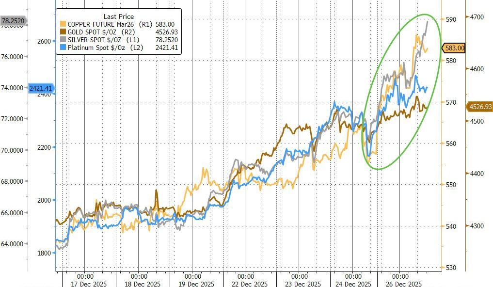 – Silver stole the show with a massive +9.05% surge—another all-time high