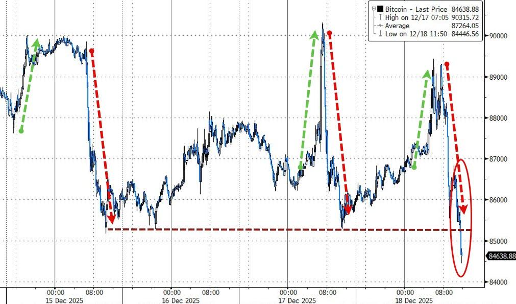 Bitcoin? Classic rollercoaster—spiked to $89K, then sank to $84K by the bell.