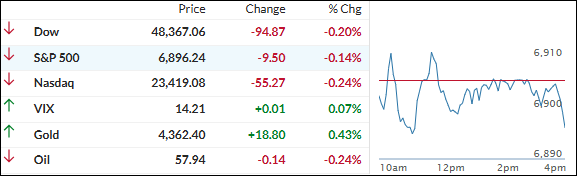 Investors kept trimming some of this year’s big winners, with Nvidia down over 1% and Palantir sliding 2.4%.