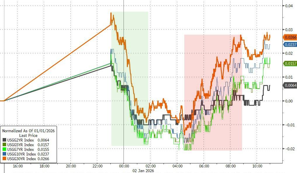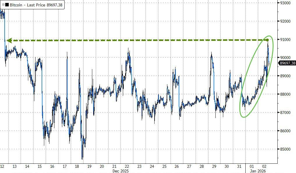 Bond yields and the dollar climbed, Bitcoin had a solid day (broke above $90K and hit near 3-week highs), but metals rode a rollercoaster—rallied overnight, touched highs like gold at$4,400, then gave most of it back to close basically flat.