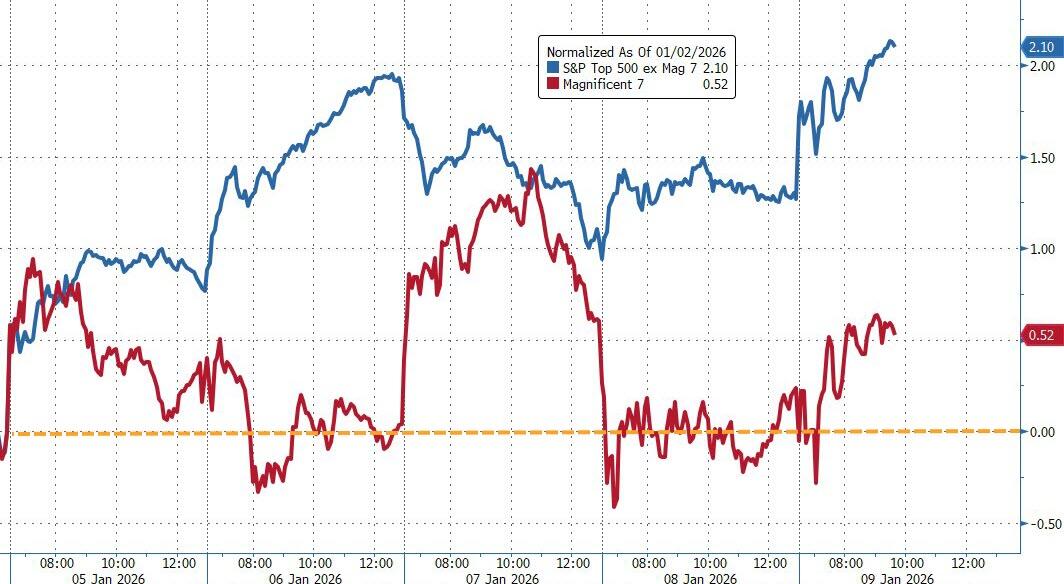 The “Mag 7” lagged again, as the rest of the S&P 500’s 493 stocks picked up the slack.