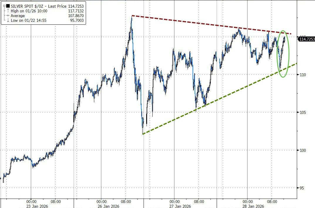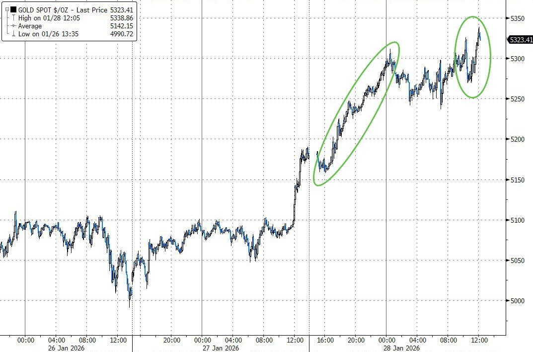 Precious metals crushed it again—gold ETF and silver ETF both surged over 3.8%, gold topped $5,300, and silver chopped around but closed near $115. Bitcoin followed suit and climbed back above $90K.