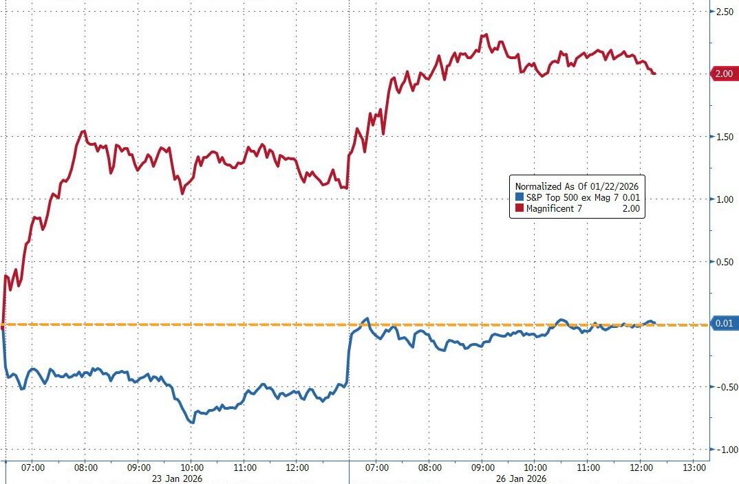 The Mag 7 found their groove again and outperformed the rest of the S&P 493 for the second day running.