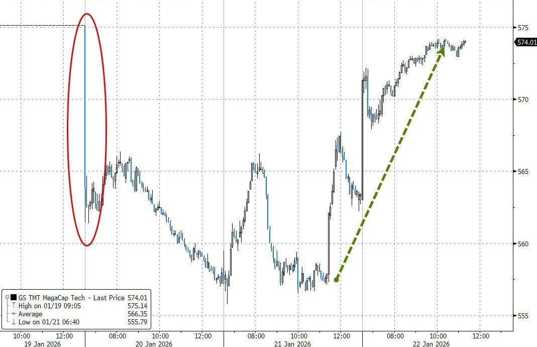 That, plus his earlier Davos comment that he won’t take Greenland by force, helped ease geopolitical nerves big time.