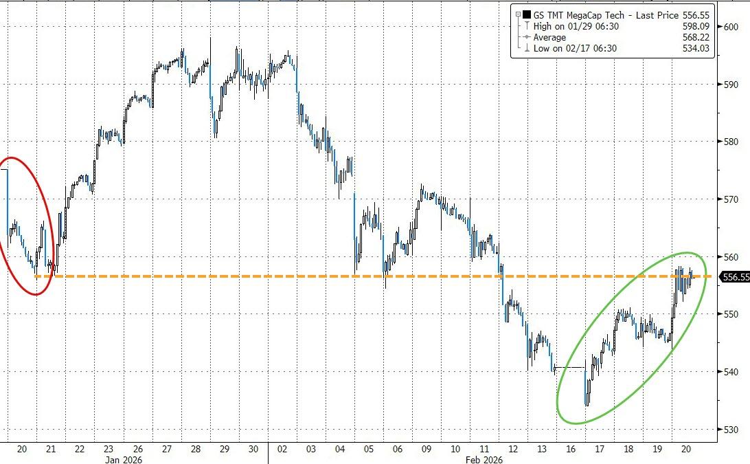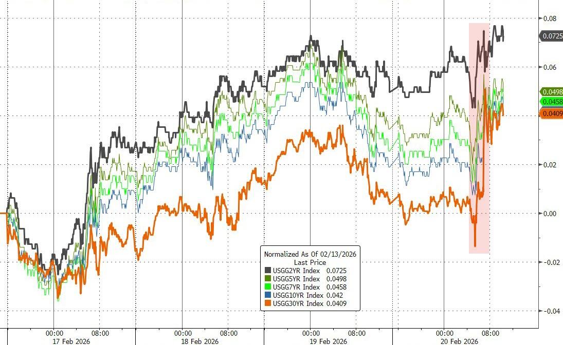 Mega-cap tech bounced back despite ongoing software weakness. Bond yields rose for the week (helping the dollar), but precious metals surged anyway—silver led with a +7% weekly gain, while gold pushed back above $5,100 for a modest weekly advance.