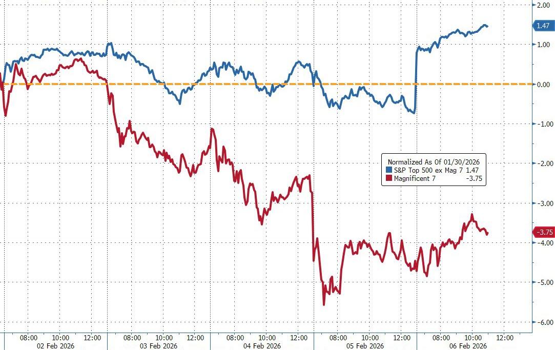 Value massively outperformed growth this week, with the Mag 7 underperforming the S&P 493 by a wide margin. Microsoft is now down 30% from its all-time high.