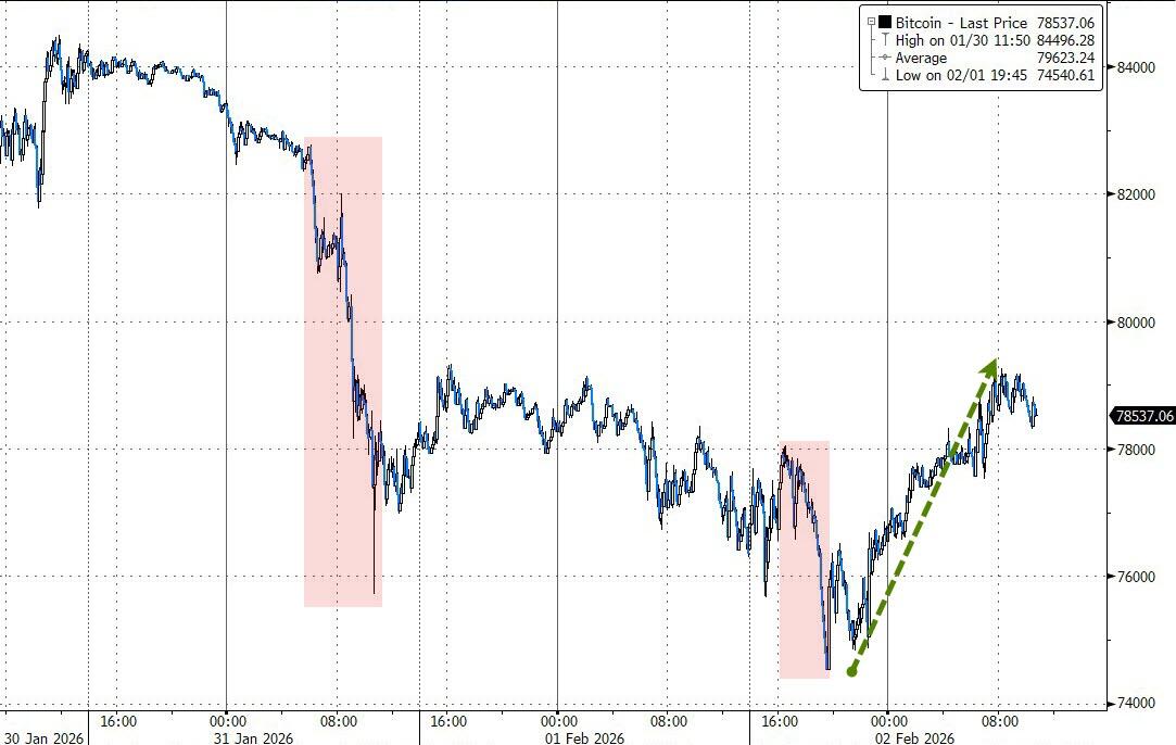 Bitcoin had a rough go early, dipping below $80,000 for the first time since April (a clear sign of risk-off vibes after Friday’s bloodbath in metals).