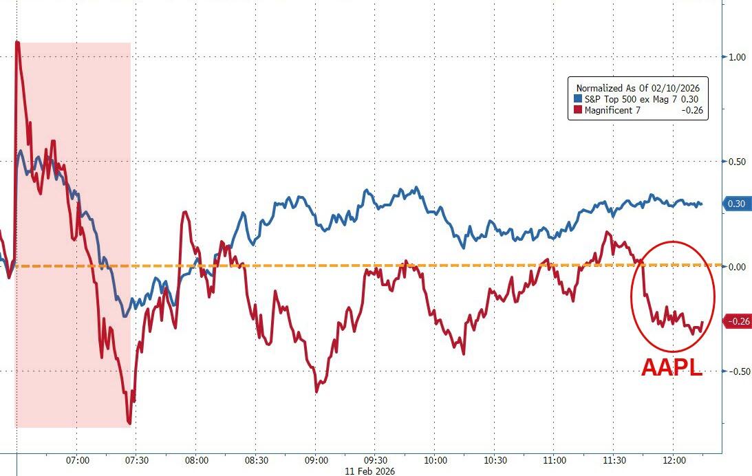The Mag 7 underperformed the rest of the S&P 493 again, bond yields rallied higher, and the dollar slipped for the fourth straight day.