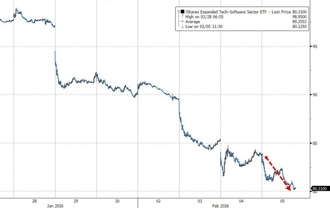 The selloff spilled into software (now in its 8th straight down day) and precious metals.