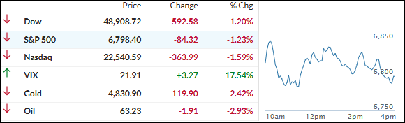 In the end, it was a violent, red-dominated day with no late recovery in sight. Breadth was ugly—only about 200 S&P 500 names stayed green.