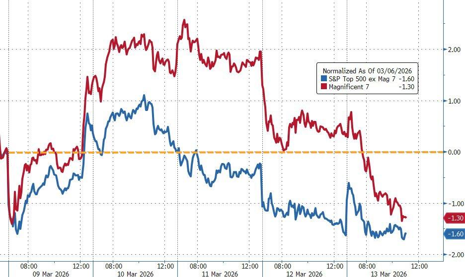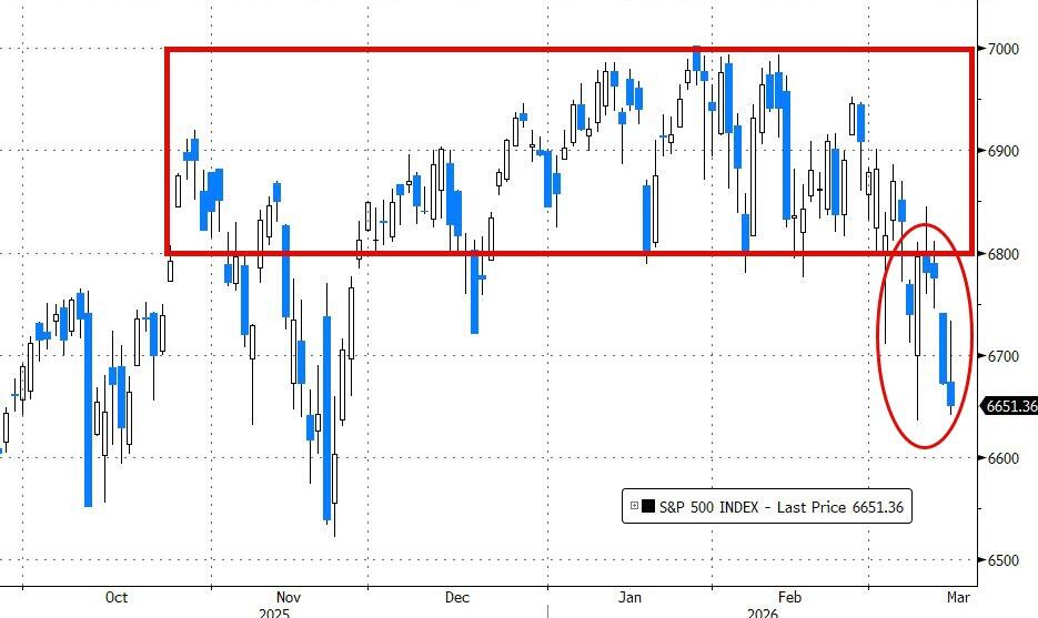 The S&P 500 broke down out of its recent trading range, and the Mag 7 cohort, which had looked like a relative safe haven for most of the week, finally gave way and slid alongside the other 493 names.
