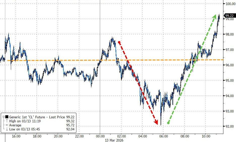 By midday, oil had flipped the script again: WTI reversed early losses and closed higher, yanking what was left of the day’s positive tone out of the equity market as confidence in anyone’s oil-price forecasts basically evaporated.