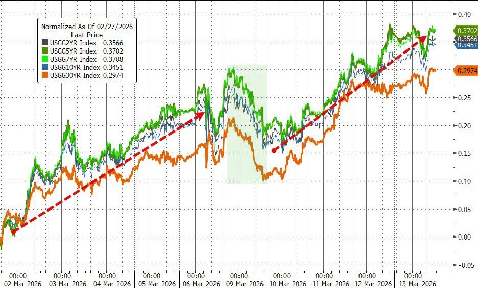 Bond yields offered no relief, surging sharply over the past two weeks as rate‑cut odds were slashed, helping keep the dollar in rally mode over the last three sessions.