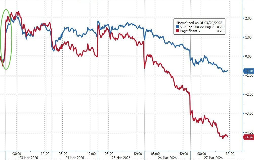 The Mag 7 continued to dramatically underperform the rest of the S&P 493. Bond yields rose across the curve (though they softened a bit today), the dollar surged for the third week in the last four, and gold finally acted like a safe haven again, pushing back above $4,500.