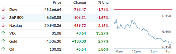 Stocks tumbled early and never really recovered, as fresh worries about the U.S.-Iran conflict and surging oil prices kept the bears firmly in control.
