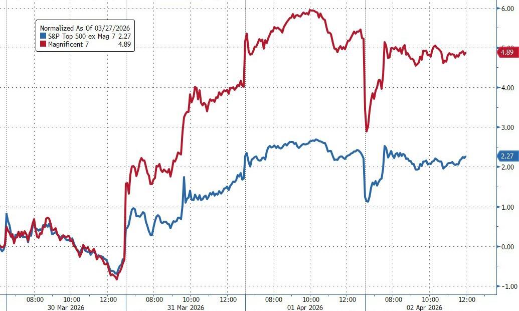 For the holiday-shortened week, the indexes rebounded nicely and posted their first up week since the war began. The Mag 7 showed signs of life again by outperforming the rest of the S&P 493.