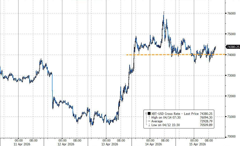 Bitcoin also traded sideways, holding $74,000 as support for now.